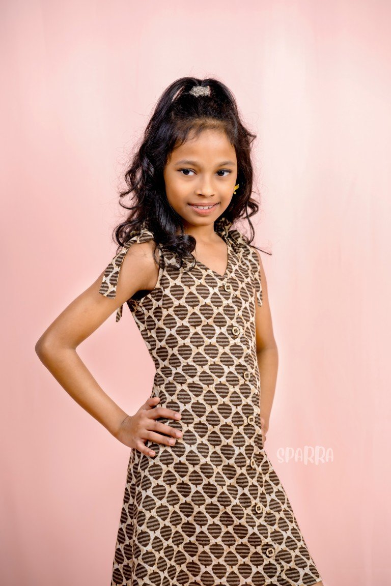 - Cream and Brown Block Printed Dress